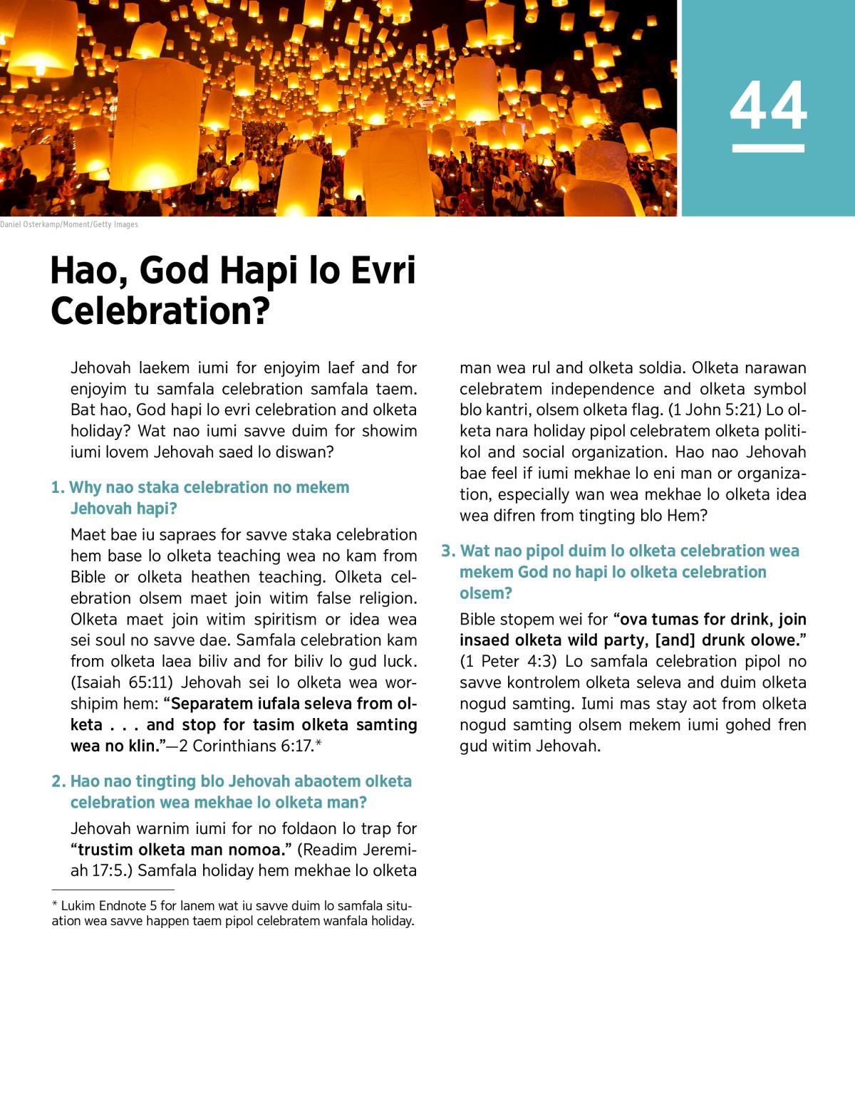 “Why Nao Olketa Jehovah’s Witness No Celebratem Samfala Holiday?” (Article lo jw.org)