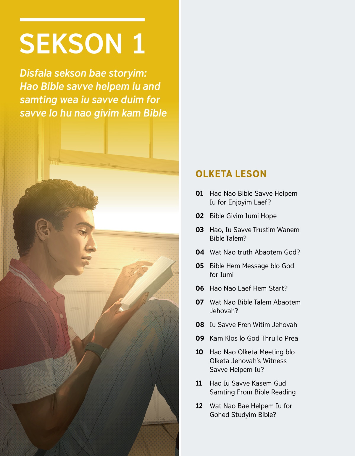 Disfala sekson bae storyim: Hao Bible savve helpem iu and samting wea iu savve duim for savve lo hu nao givim kam Bible