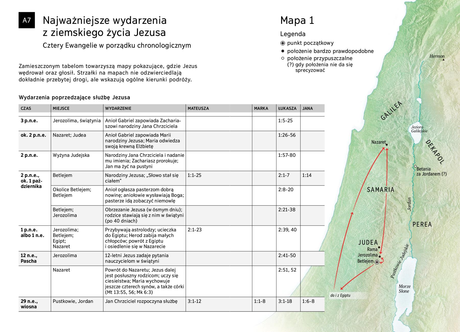 Zamieszczonym tabelom towarzyszą mapy pokazujące, gdzie Jezus wędrował oraz głosił. Strzałki na mapach nie odzwierciedlają dokładnie przebytej drogi, ale wskazują ogólne kierunki podróży.