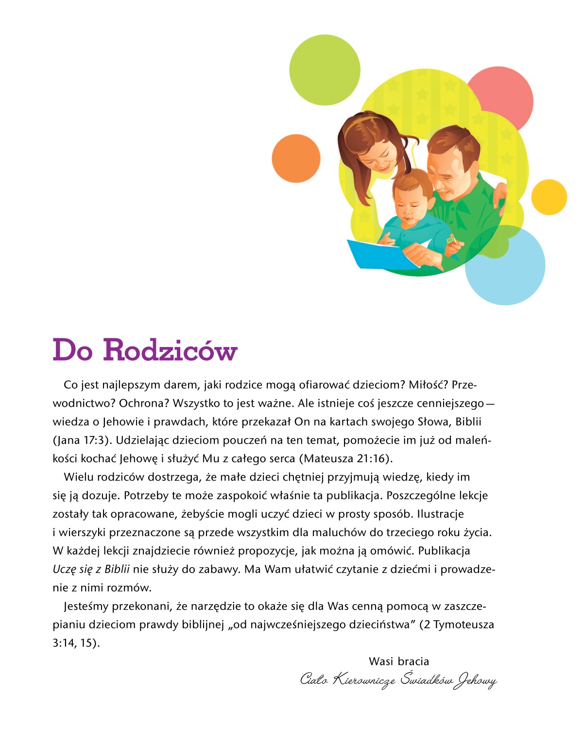 Jesteśmy przekonani, że narzędzie to okaże się dla Was cenną pomocą w zaszczepianiu dzieciom prawdy biblijnej „od najwcześniejszego dzieciństwa” (2 Tymoteusza 3:14, 15).