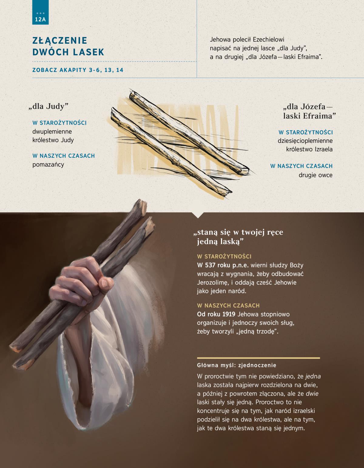 Jehowa polecił Ezechielowi napisać na jednej lasce „dla Judy”, a na drugiej „dla Józefa — laski Efraima”.