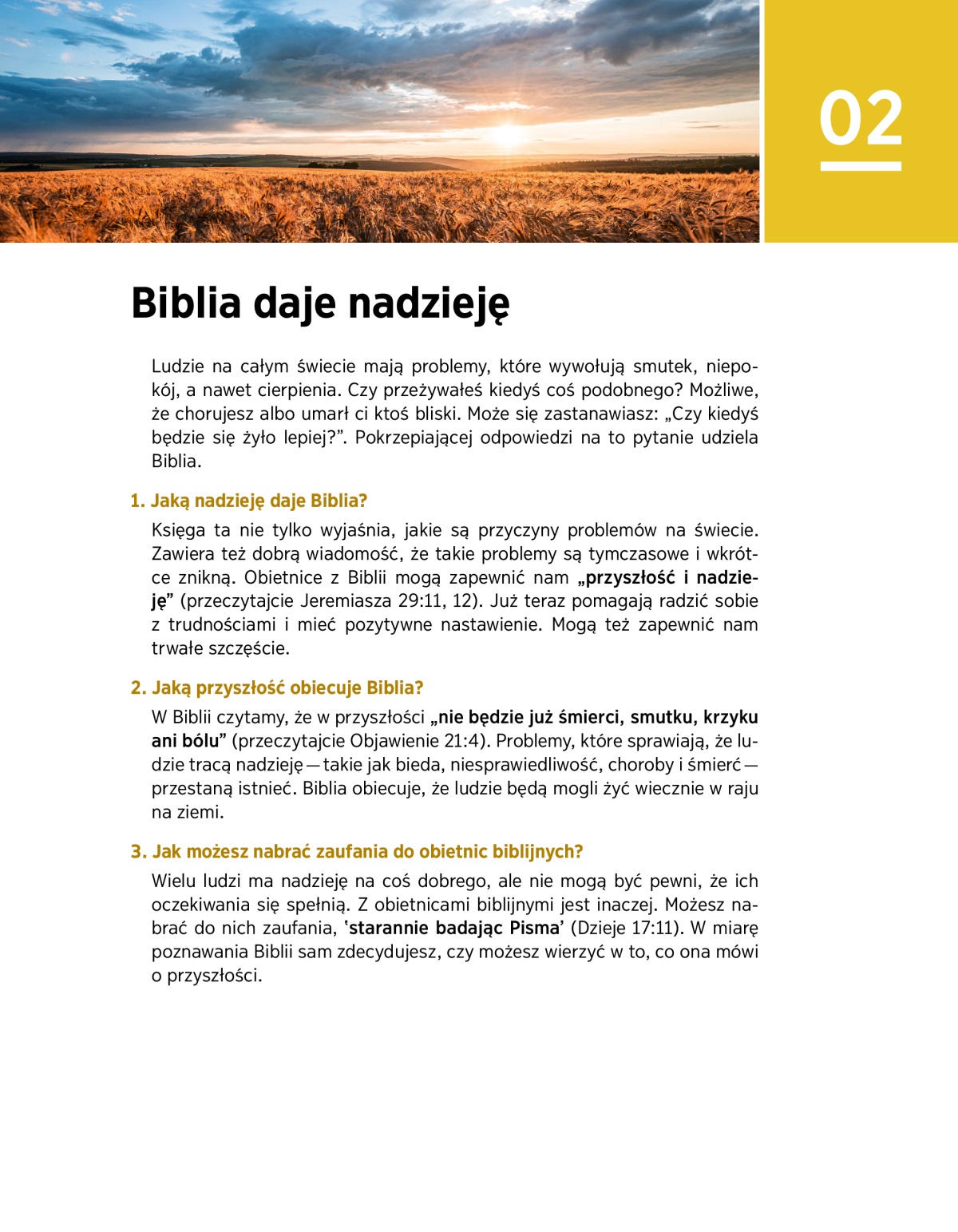 Biblia daje nam nadzieję i pomaga radzić sobie z problemami, bo obiecuje szczęśliwą przyszłość.