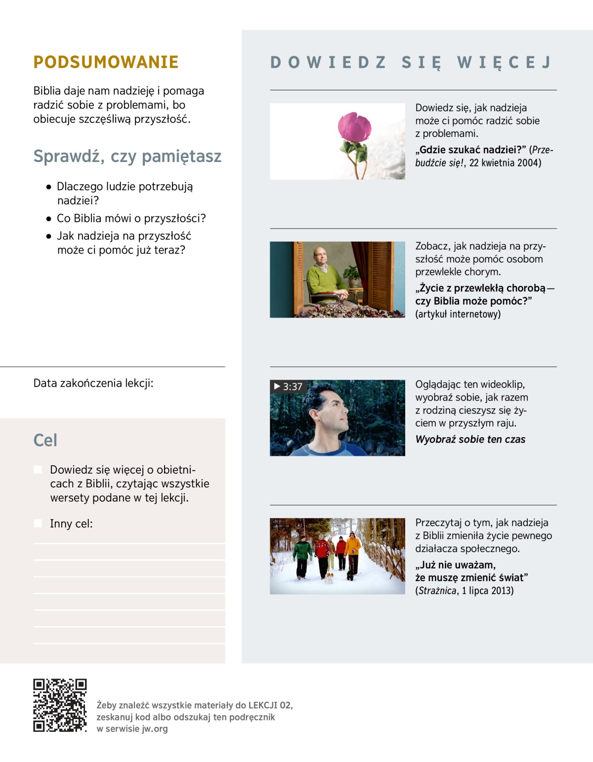 Księga ta nie tylko wyjaśnia, jakie są przyczyny problemów na świecie. Zawiera też dobrą wiadomość, że takie problemy są tymczasowe i wkrótce znikną. Obietnice z Biblii mogą zapewnić nam „przyszłość i nadzieję” (przeczytajcie Jeremiasza 29:11, 12). Już teraz pomagają radzić sobie z trudnościami i mieć pozytywne nastawienie. Mogą też zapewnić nam trwałe szczęście.