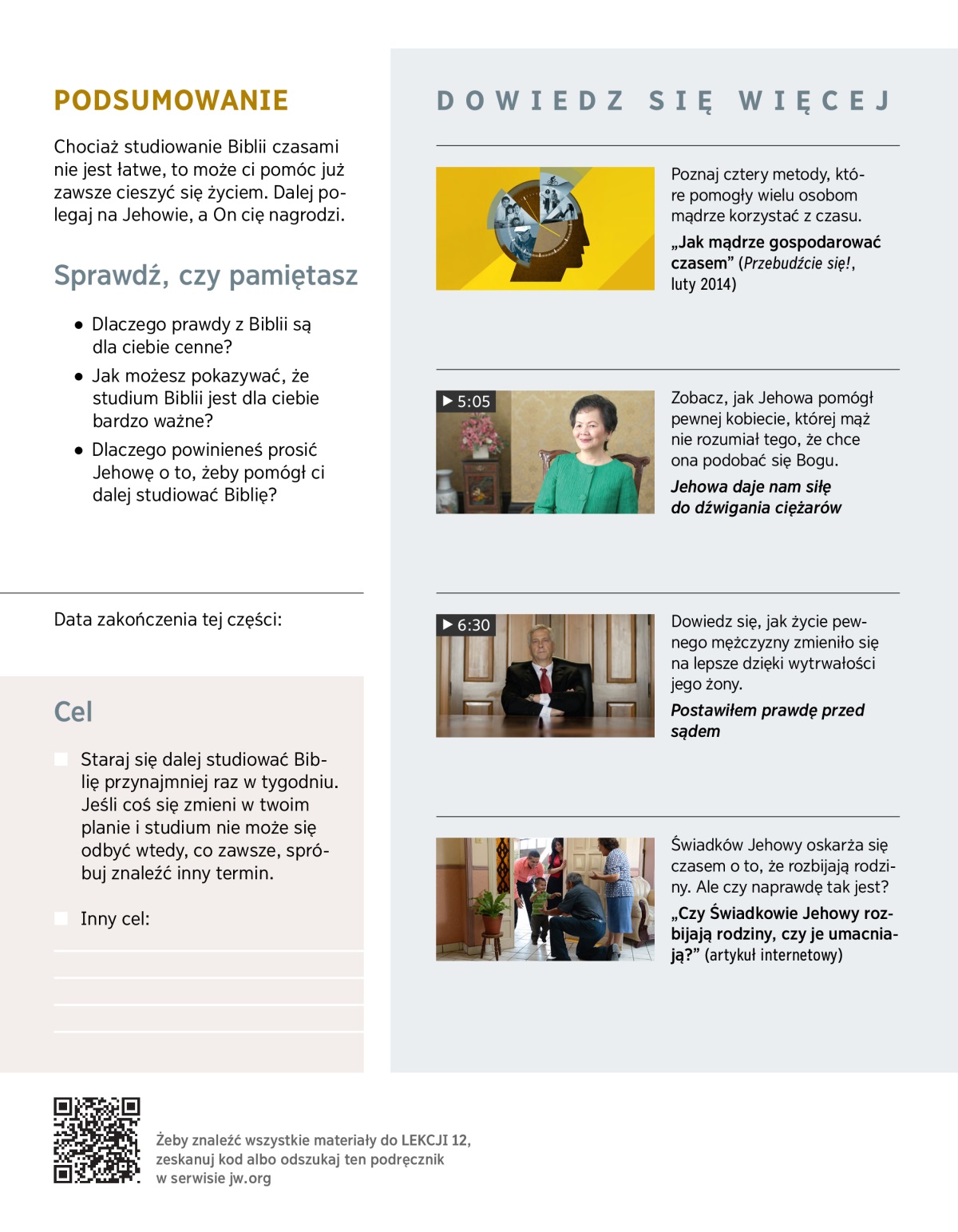 Jehowa jako twój wszechmocny Stwórca i Przyjaciel chce, żebyś Go poznał, i będzie cię w tym wspierał. Może ci dać „i pragnienie, i siły do działania” (przeczytajcie Filipian 2:13). Kiedy więc będziesz potrzebował dodatkowej motywacji, żeby studiować albo zastosować w życiu to, czego się uczysz, Jehowa ci pomoże. Da ci też siły do pokonania przeszkód i sprzeciwu. Regularnie Go proś, żeby pomógł ci kontynuować studium Biblii (1 Tesaloniczan 5:17).
