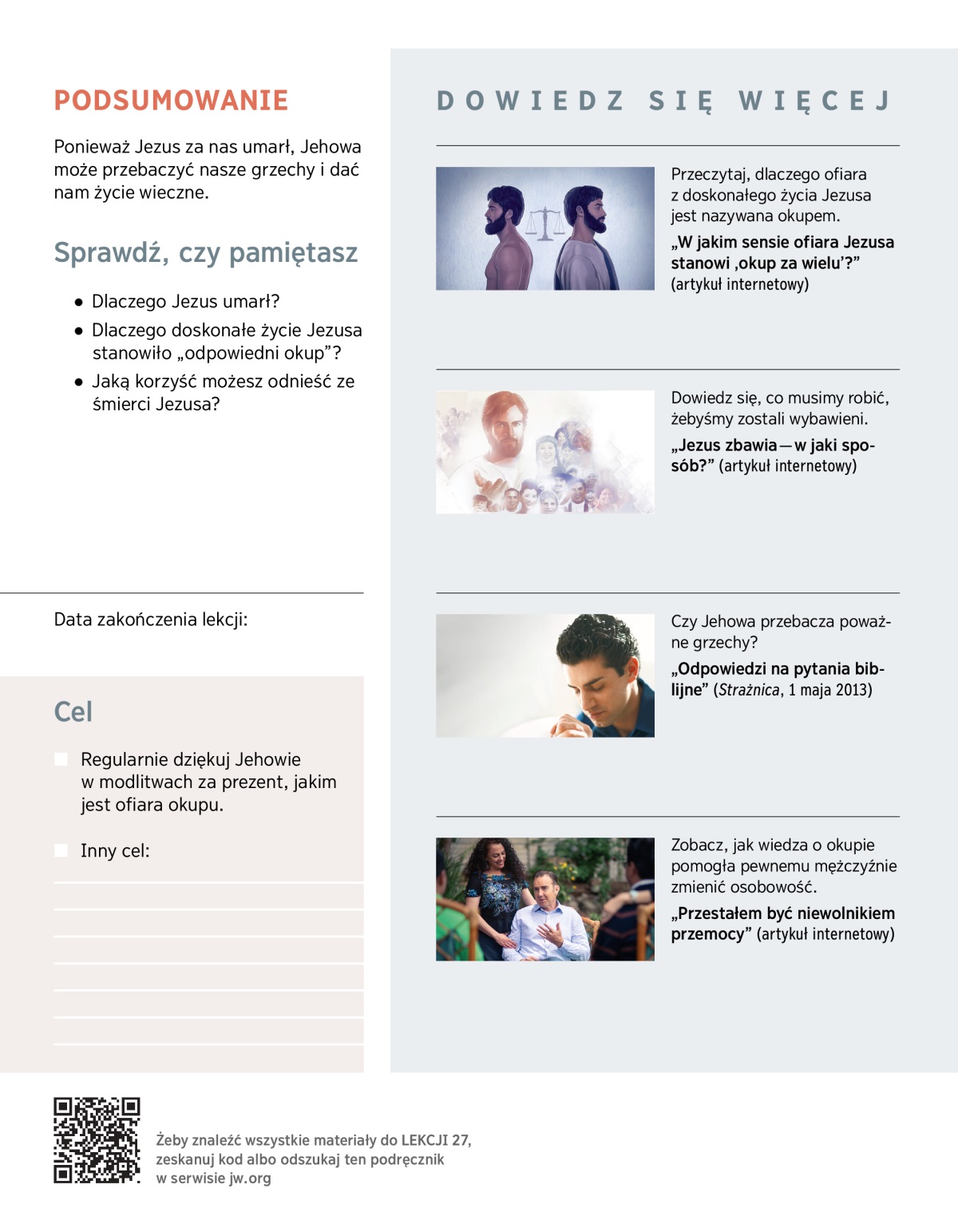 Dowiedz się więcej o tym, dlaczego Jezus oddał za nas życie. Rozważ też wynikające z tego korzyści.