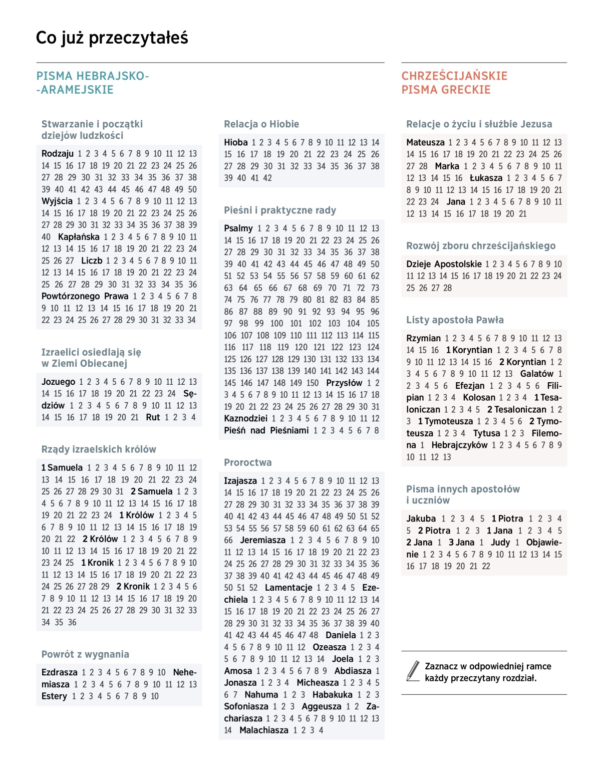 Zaznacz w odpowiedniej ramce każdy przeczytany rozdział.