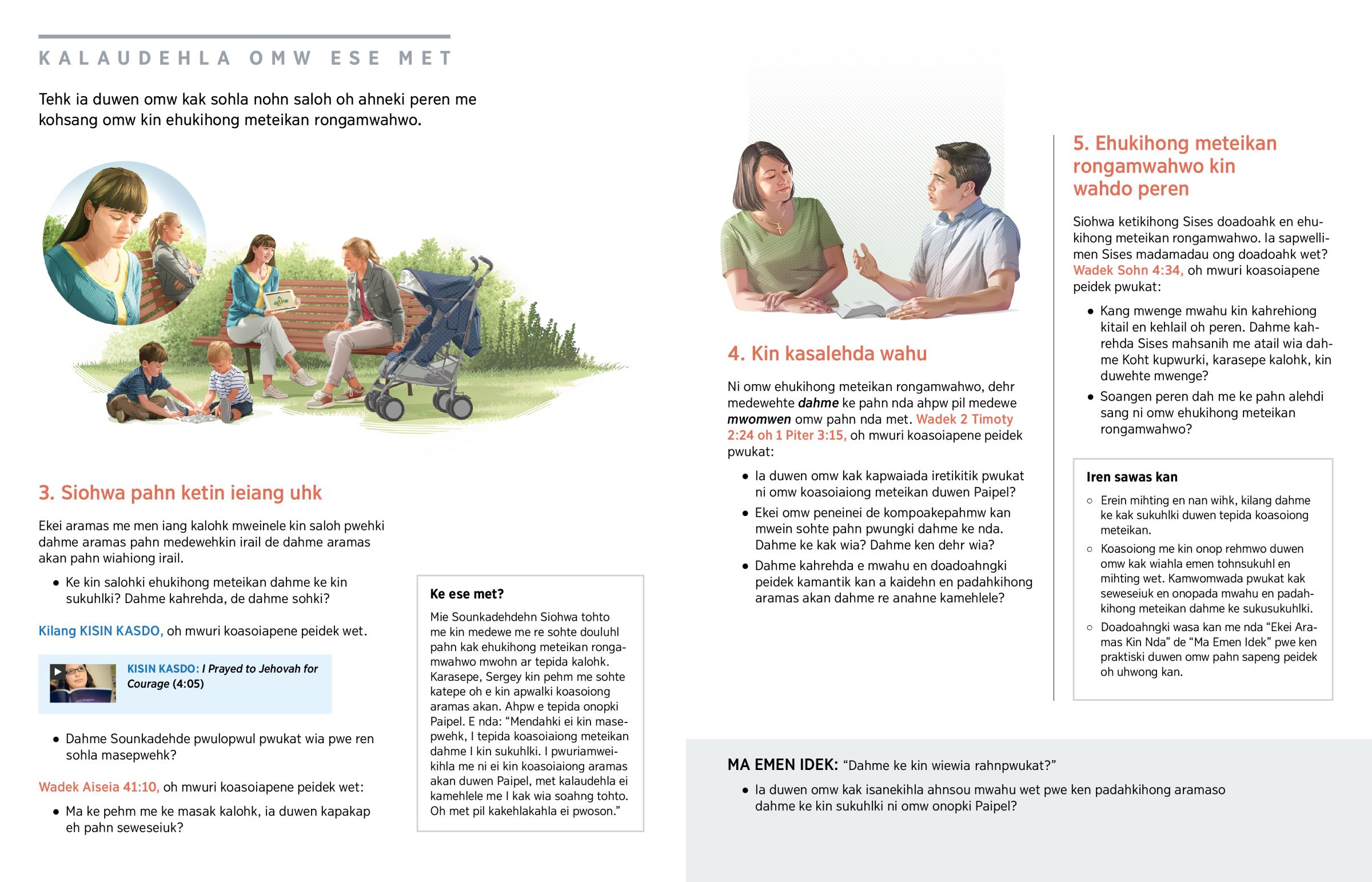 Ni omw ehukihong meteikan rongamwahwo, dehr medewehte dahme ke pahn nda ahpw pil medewe mwomwen omw pahn nda met. Wadek 2 Timoty 2:24 oh 1 Piter 3:15, oh mwuri koasoiapene peidek pwukat: