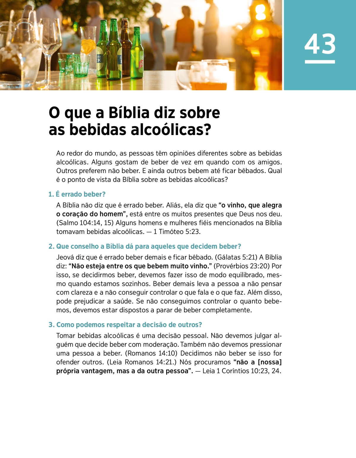 Veja os princípios da Bíblia que vão ajudar você a decidir se deve beber ou não, e a quantidade. Veja também o que você pode fazer se tiver problema com a bebida.