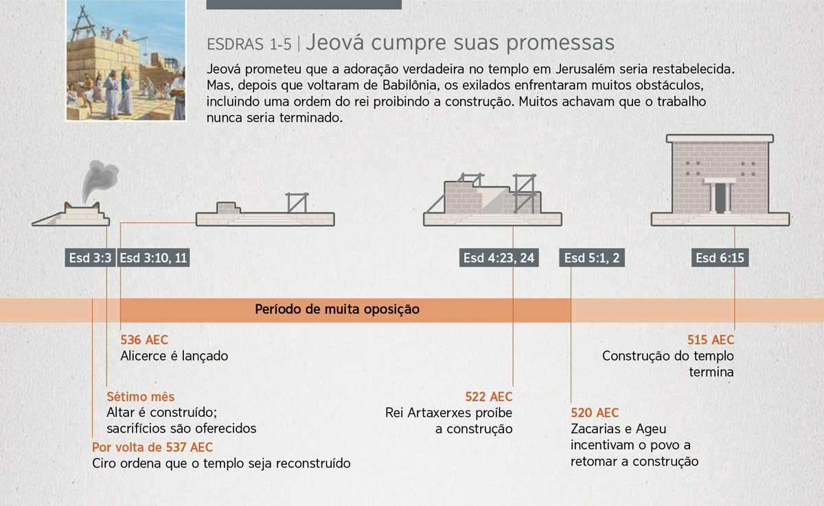Jeová prometeu que a adoração verdadeira no templo em Jerusalém seria restabelecida. Mas, depois que voltaram de Babilônia, os exilados enfrentaram muitos obstáculos, incluindo uma ordem do rei proibindo a construção. Muitos achavam que o trabalho nunca seria terminado.
