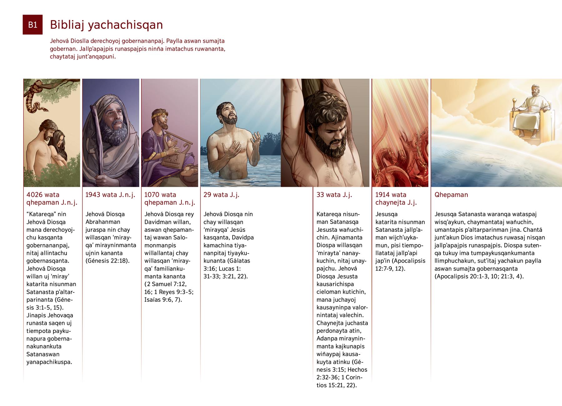 29 wata J.j. Jehová Diosqa nin chay willasqan ‘mirayqa’ Jesús kasqanta, Davidpa kamachina tiyananpitaj tiyaykukunanta (Gálatas 3:16; Lucas 1:31-33; 3:21, 22). |