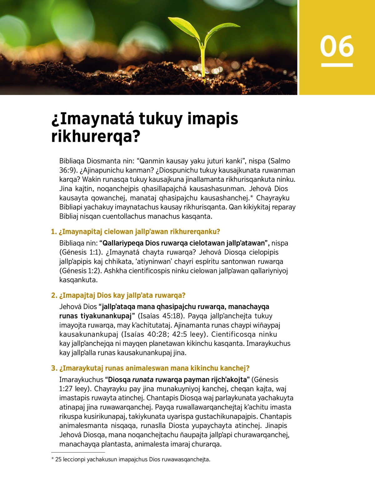 a 25 leccionpi yachakusun imapajchus Dios ruwawasqanchejta.