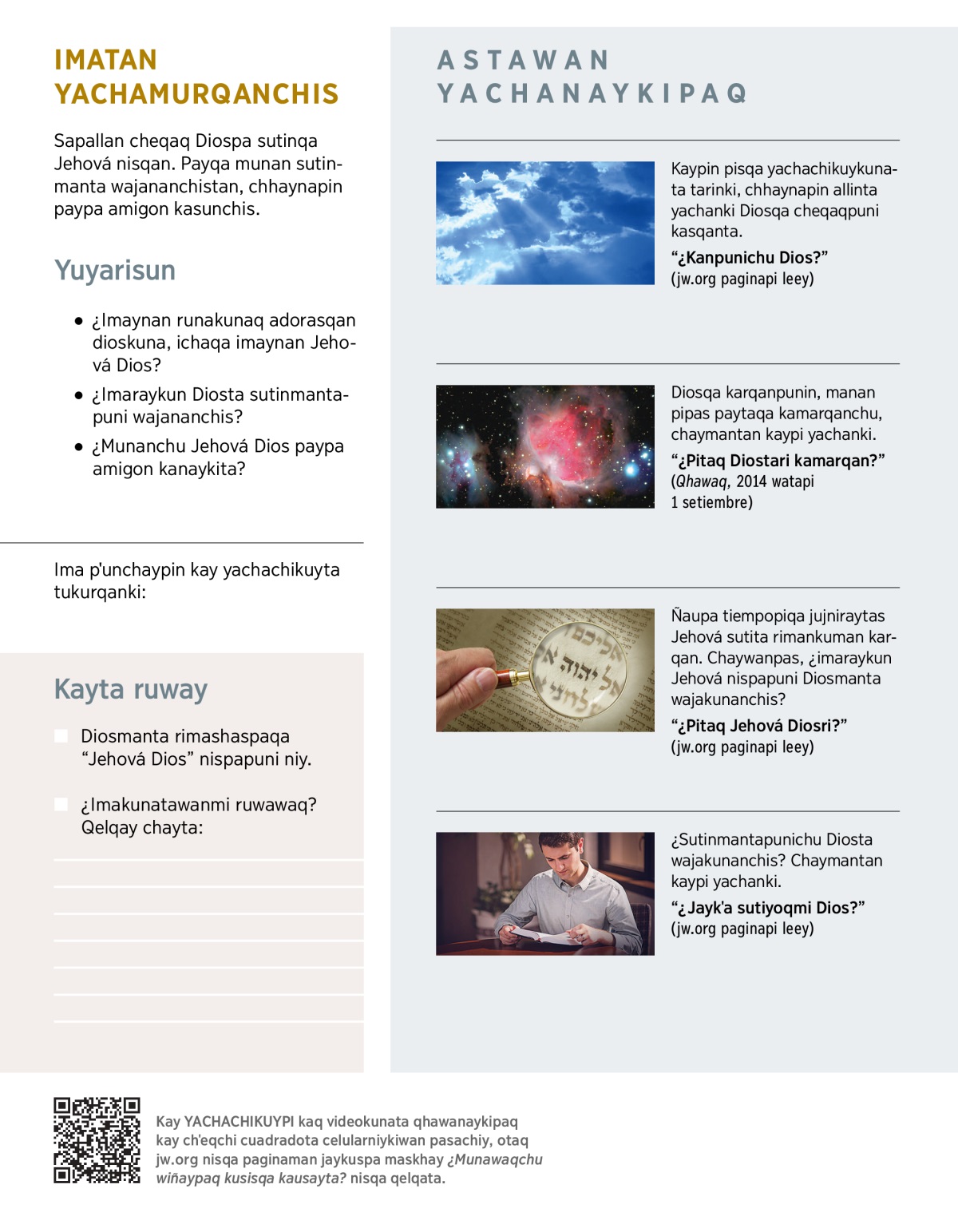 1. ¿Iman Diospa sutin? ¿Munanchu pay sutinta yachananchista?