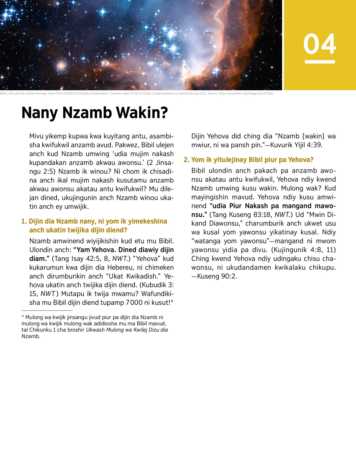 “Nzamb Ukweting Majin Minch?” (Mutu wa mulong udia pa jw.org)