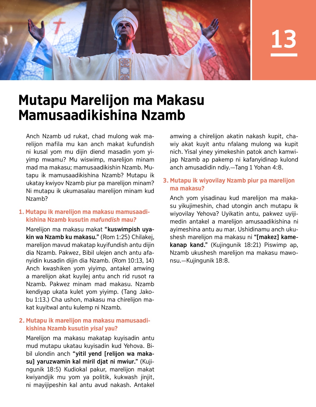 1. Mutapu ik marelijon ma makasu mamusaadikishina Nzamb kusutin mafundish mau?