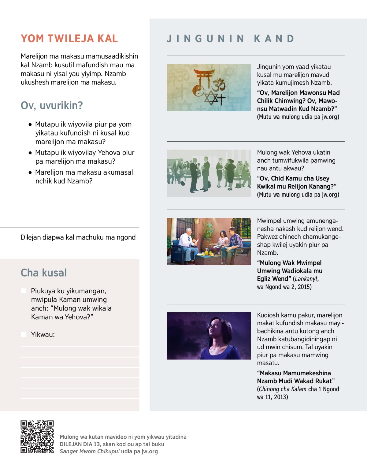 “Ov, Chid Kamu cha Usey Kwikal mu Relijon Kanang?” (Mutu wa mulong udia pa jw.org)