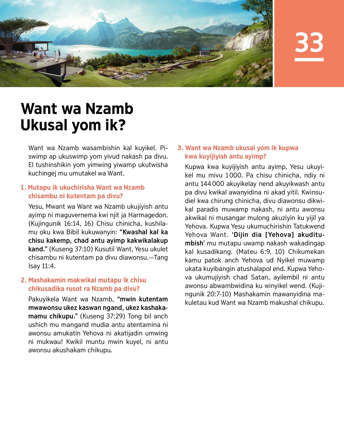 Want wa Nzamb ukuwanyish rusot ra Nzamb. Ukukarumun divu diawonsu kwikal paradis mukwizula antu awamp akumwifukwila Yehova chikupu.