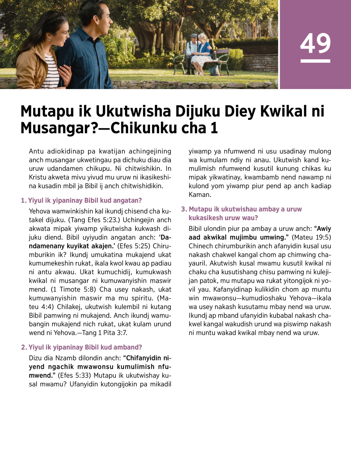 Bibil umukasikeshin mband kumulimish nfumwend ap anch kamusadidinap Yehova. Tang 1 Pita 3:1, 2, kupwa isambinany yipul ey: