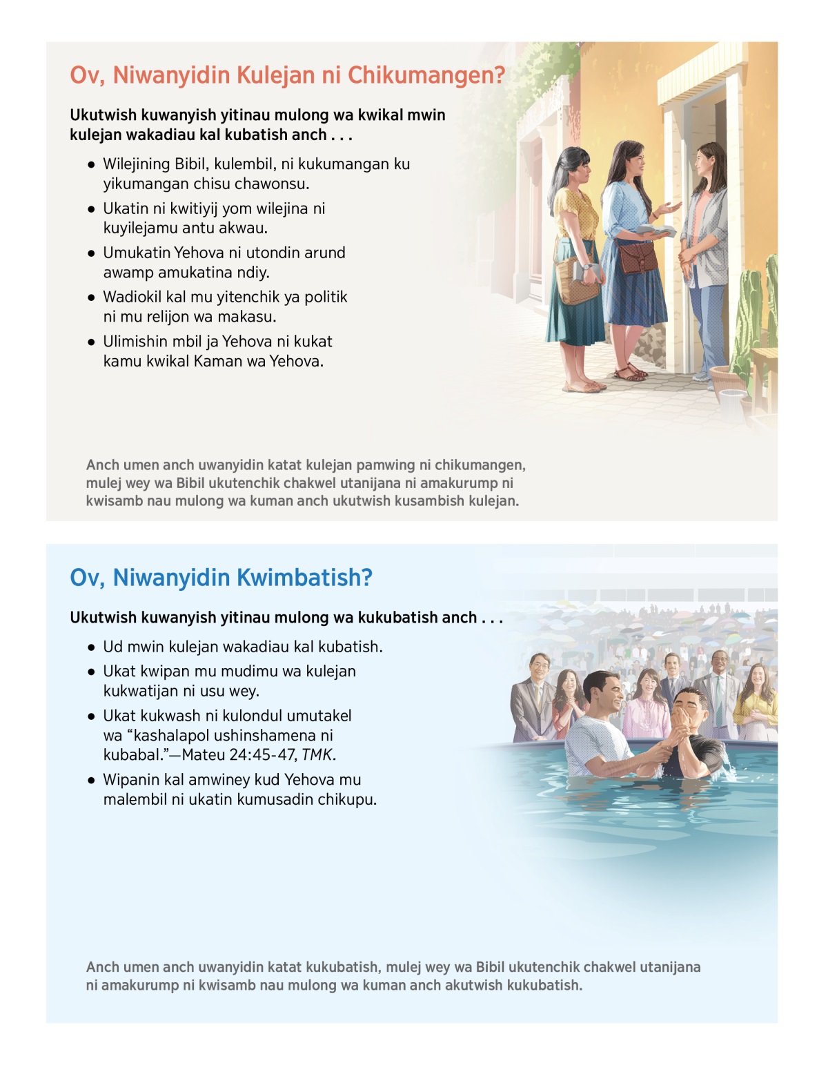 Anch umen anch uwanyidin katat kukubatish, mulej wey wa Bibil ukutenchik chakwel utanijana ni amakurump ni kwisamb nau mulong wa kuman anch akutwish kukubatish.