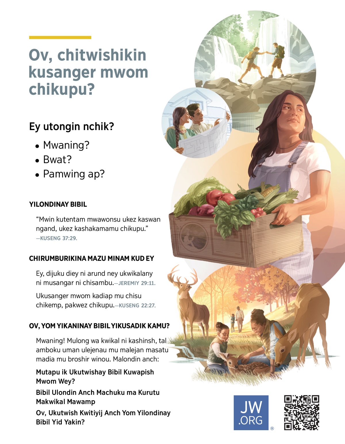 Ey, dijuku diey ni arund ney ukwikalany ni musangar ni chisambu.—JEREMIY 29:11.