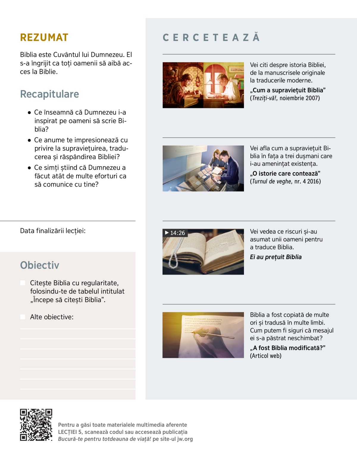 Vizionați MATERIALUL VIDEO. Apoi citiți 2 Timotei 3:16 și discutați:
