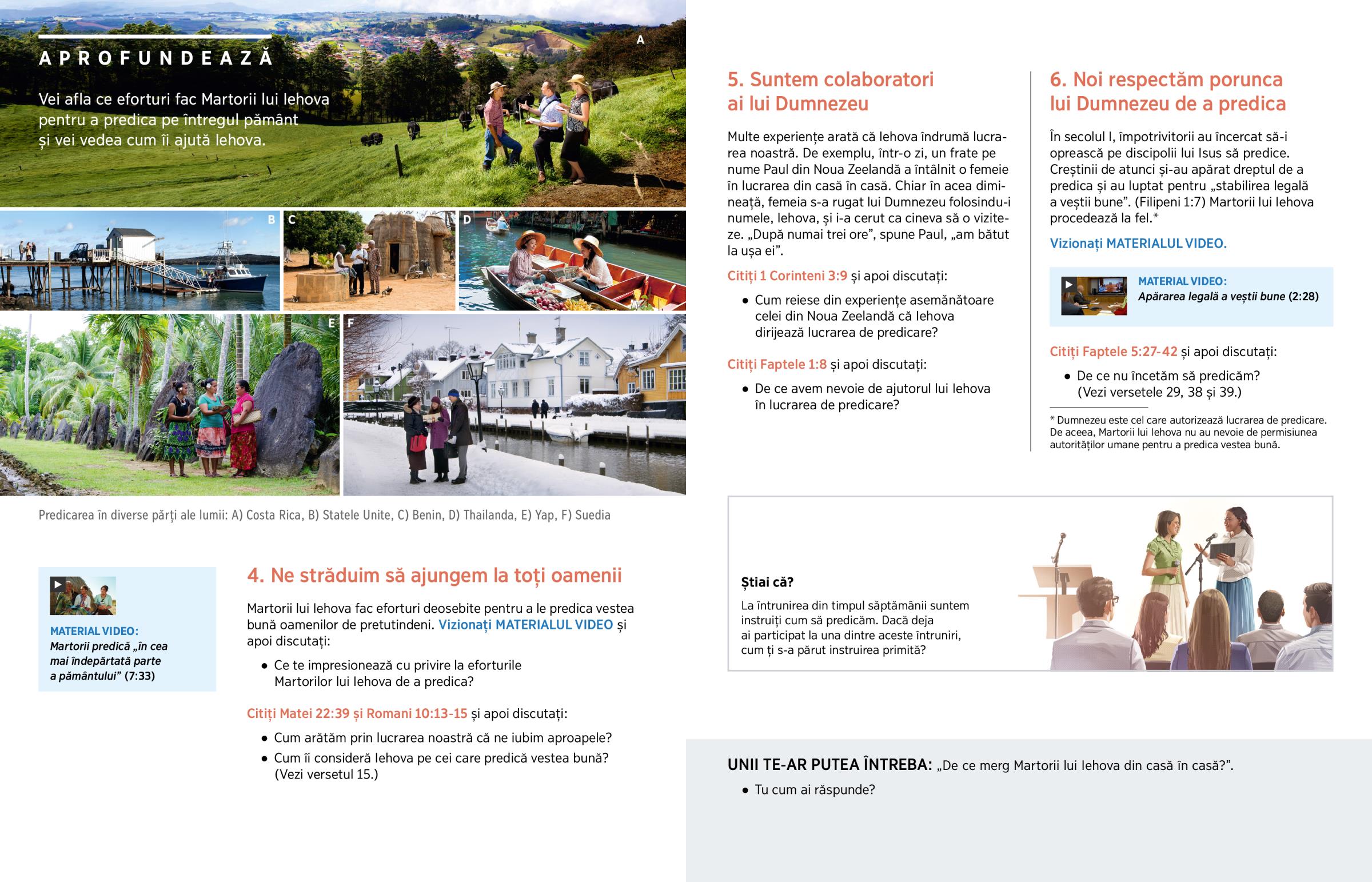 Martorii lui Iehova fac eforturi deosebite pentru a le predica vestea bună oamenilor de pretutindeni. Vizionați MATERIALUL VIDEO și apoi discutați: