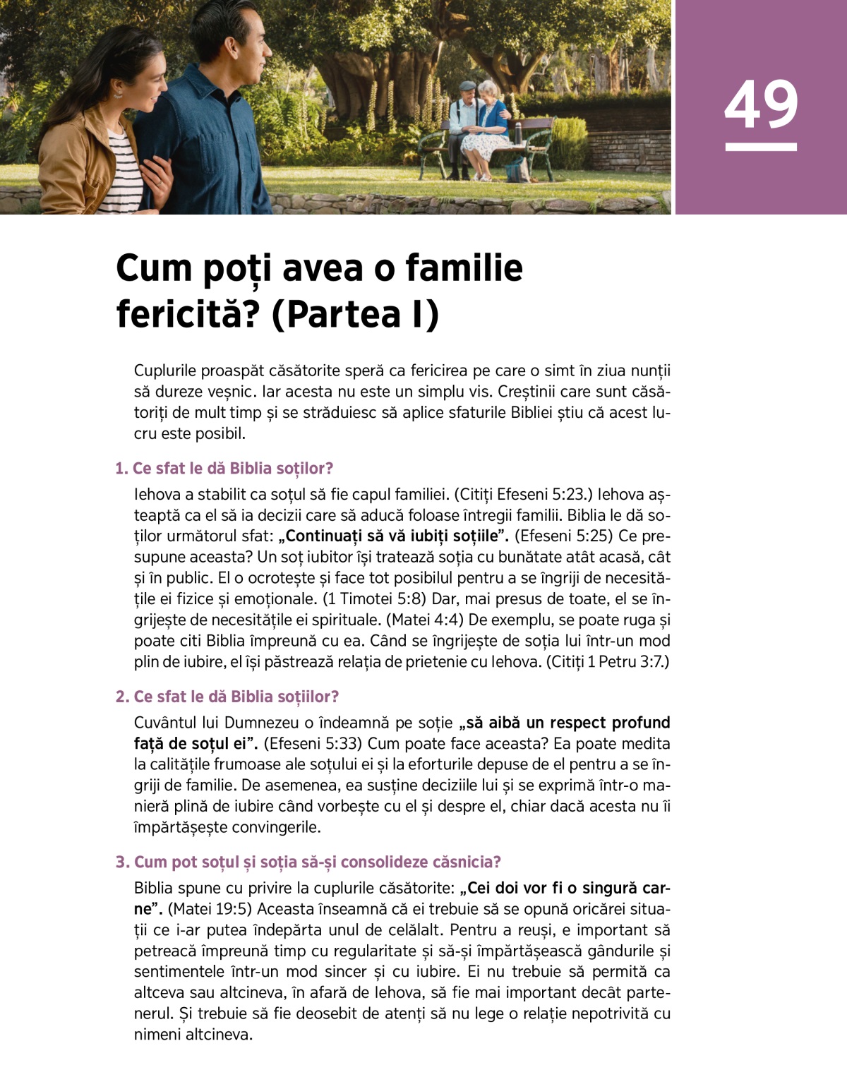 Nicio căsnicie nu e perfectă. De aceea, soțul și soția trebuie să colaboreze pentru a depăși problemele. Vizionați MATERIALUL VIDEO și apoi discutați: