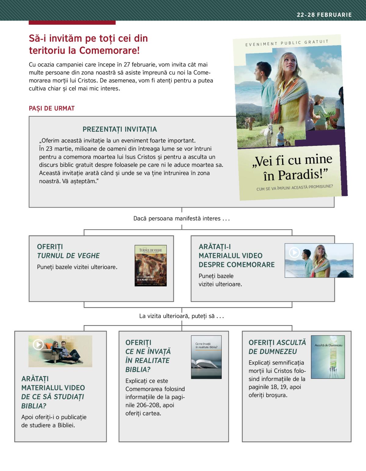 Cu ocazia campaniei care începe în 27 februarie, vom invita cât mai multe persoane din zona noastră să asiste împreună cu noi la Comemorarea morții lui Cristos. De asemenea, vom fi atenți pentru a putea cultiva chiar și cel mai mic interes.