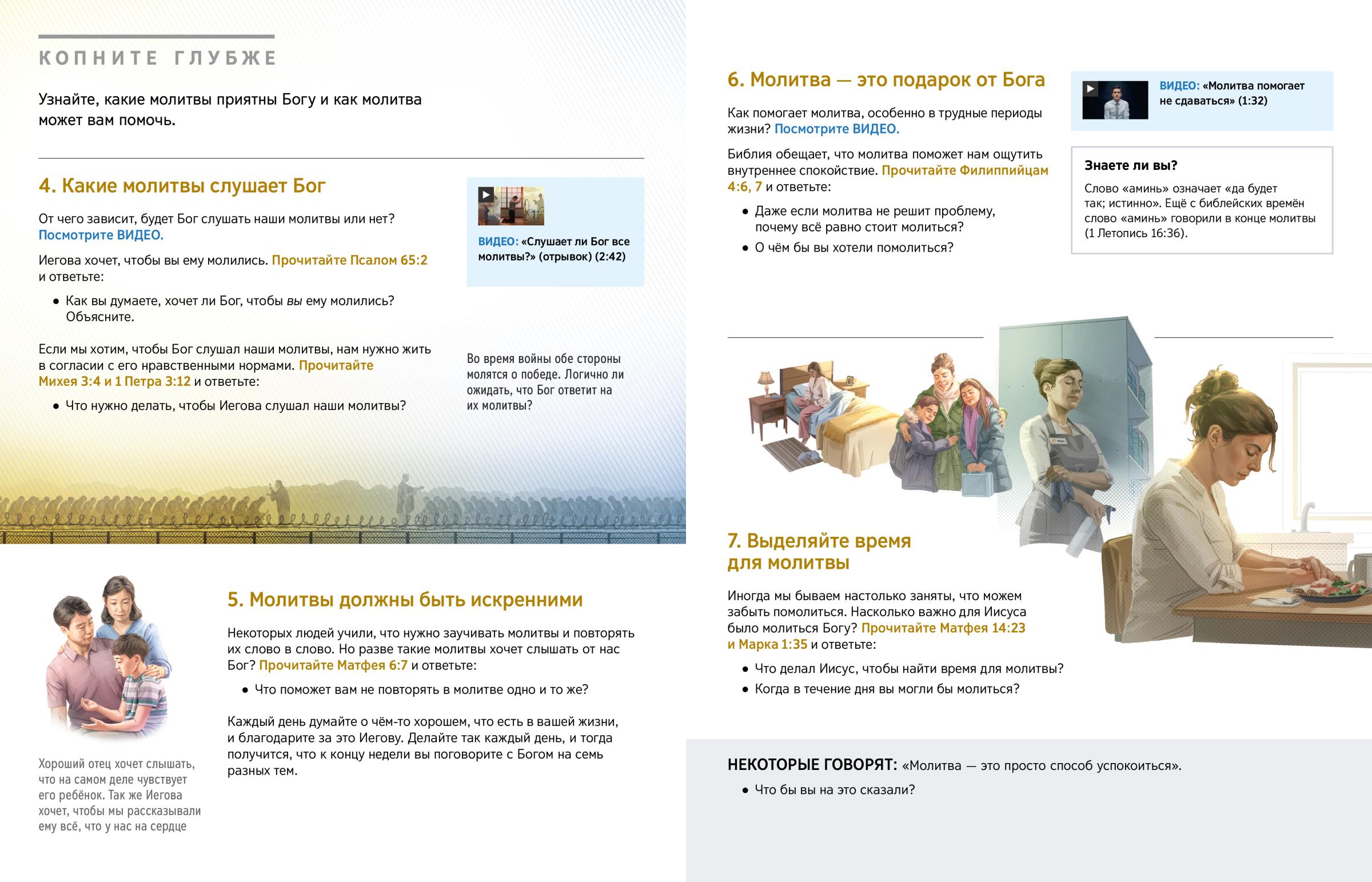 Бывает ли, что вы не знаете, как поступить, и вам нужен совет? А может, у вас есть важные вопросы, на которые вы хотите получить ответы? Нуждаетесь ли вы в утешении или добром слове? Хотели бы вы стать ближе к Иегове? Всё это вам может дать молитва. Но как нужно молиться? Слушает ли Бог все молитвы? Что нужно делать, чтобы Бог слушал ваши молитвы? Давайте узнаем.