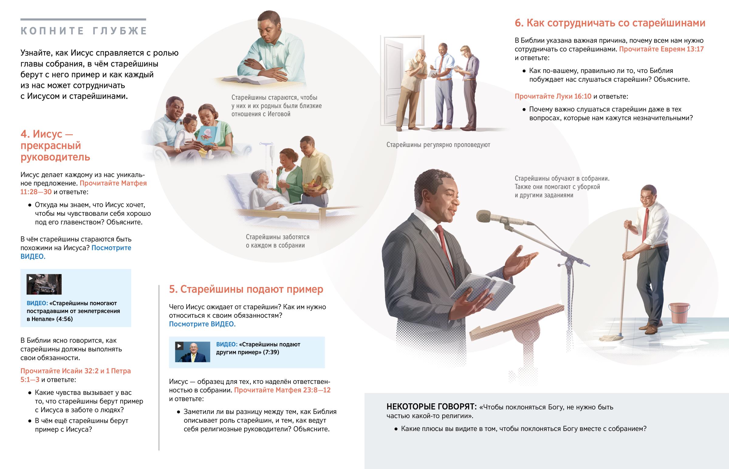Иисус — глава собрания. Мы рады сотрудничать со старейшинами, потому что они заботятся о нас и во всём берут пример с Христа.
