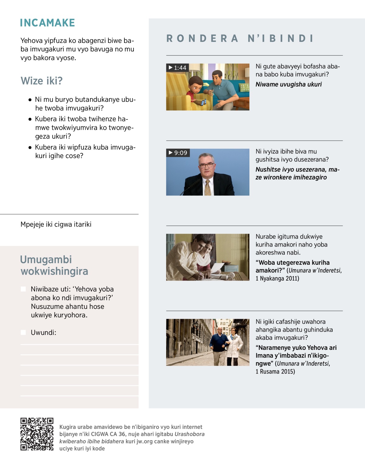 • Kubera iki twoba twihenze hamwe twokwiyumvira ko twonyegeza ukuri?