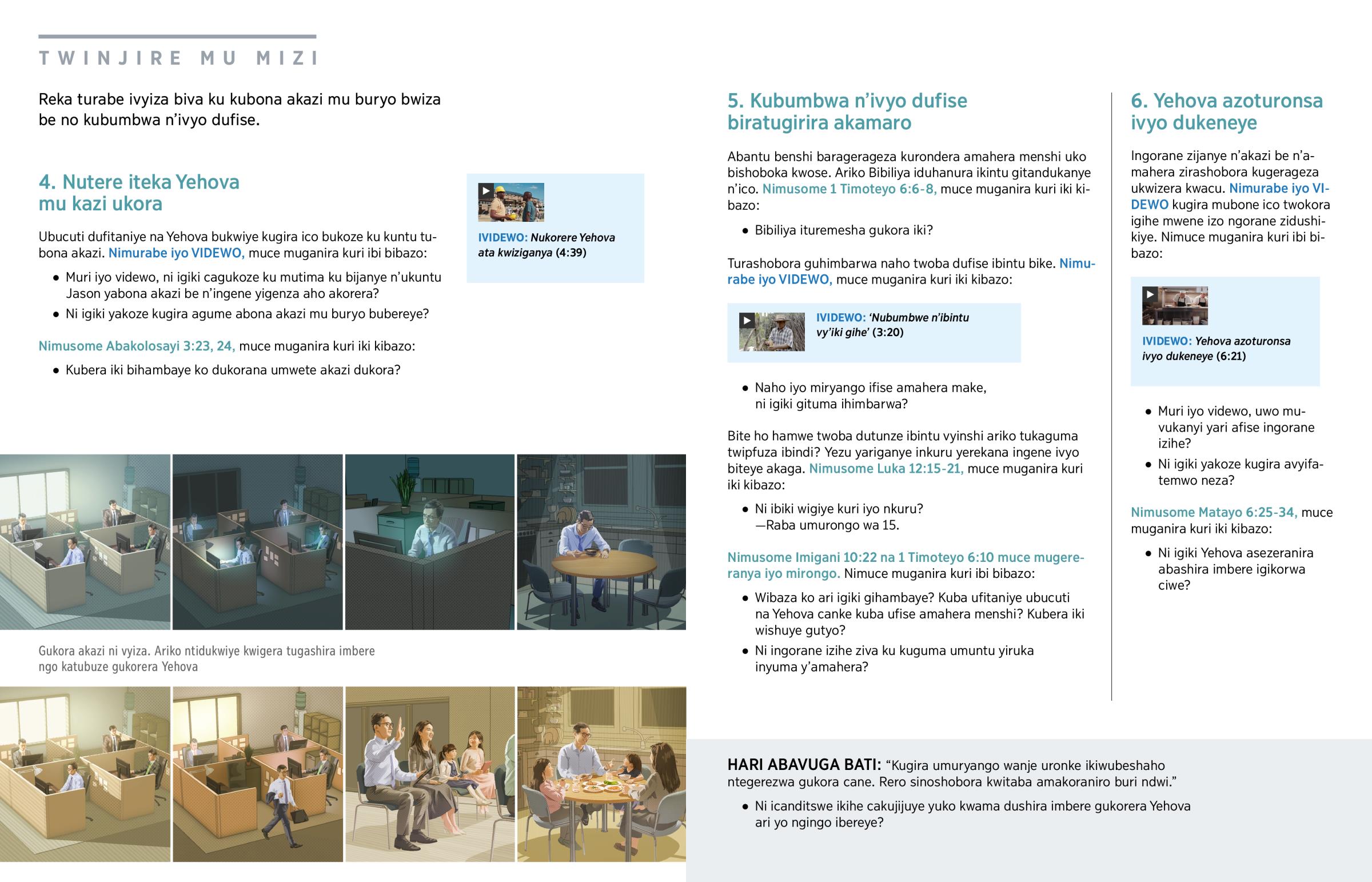 Ubucuti dufitaniye na Yehova bukwiye kugira ico bukoze ku kuntu tubona akazi. Nimurabe iyo VIDEWO, muce muganira kuri ibi bibazo: