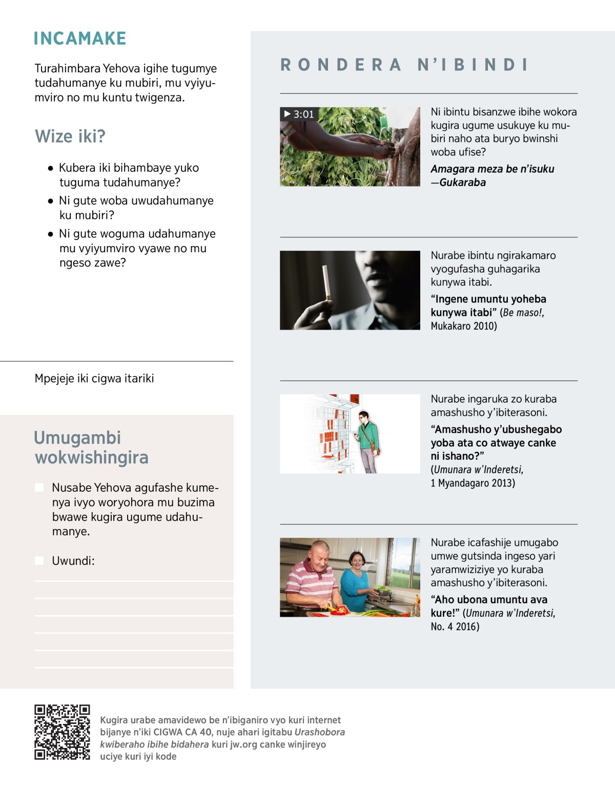 b Kugira urabe ivyogufasha gutsinda ingeso yo kwimara inambu y’umubiri uri wenyene, nurabe ikiganiro kivuga ngo “Notsinda gute ingeso yo kwimara inambu y’umubiri ndi jenyene?” mu gitabu Ibibazo urwaruka rwibaza—Inyishu ngirakamaro, Igitabu ca 1, ikigabane ca 25.