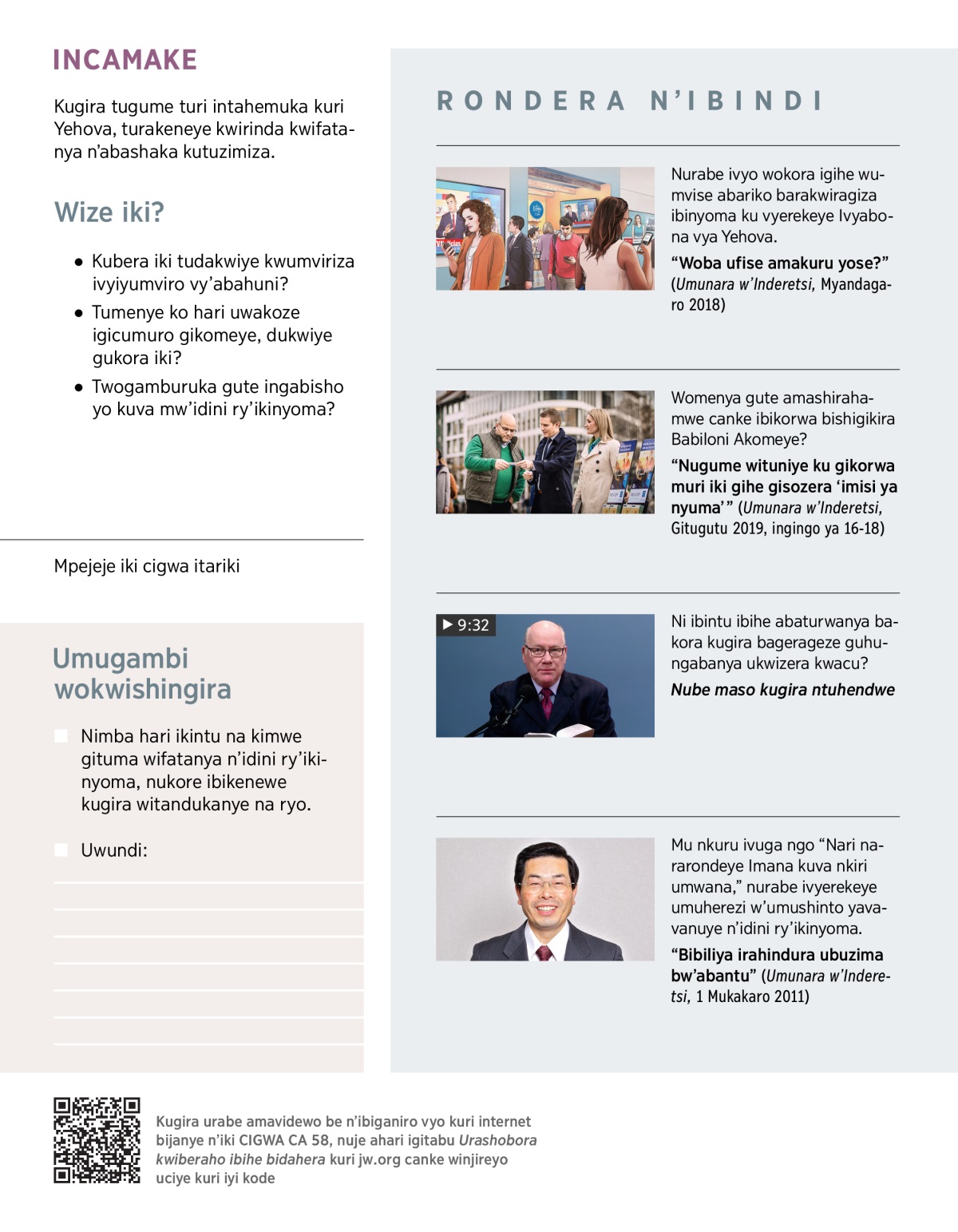 Muri ivyo bintu vyose, nufate ingingo izotuma ugira ijwi ryo mu mutima ryiza kandi izotuma uguma uri intahemuka kuri Yehova.