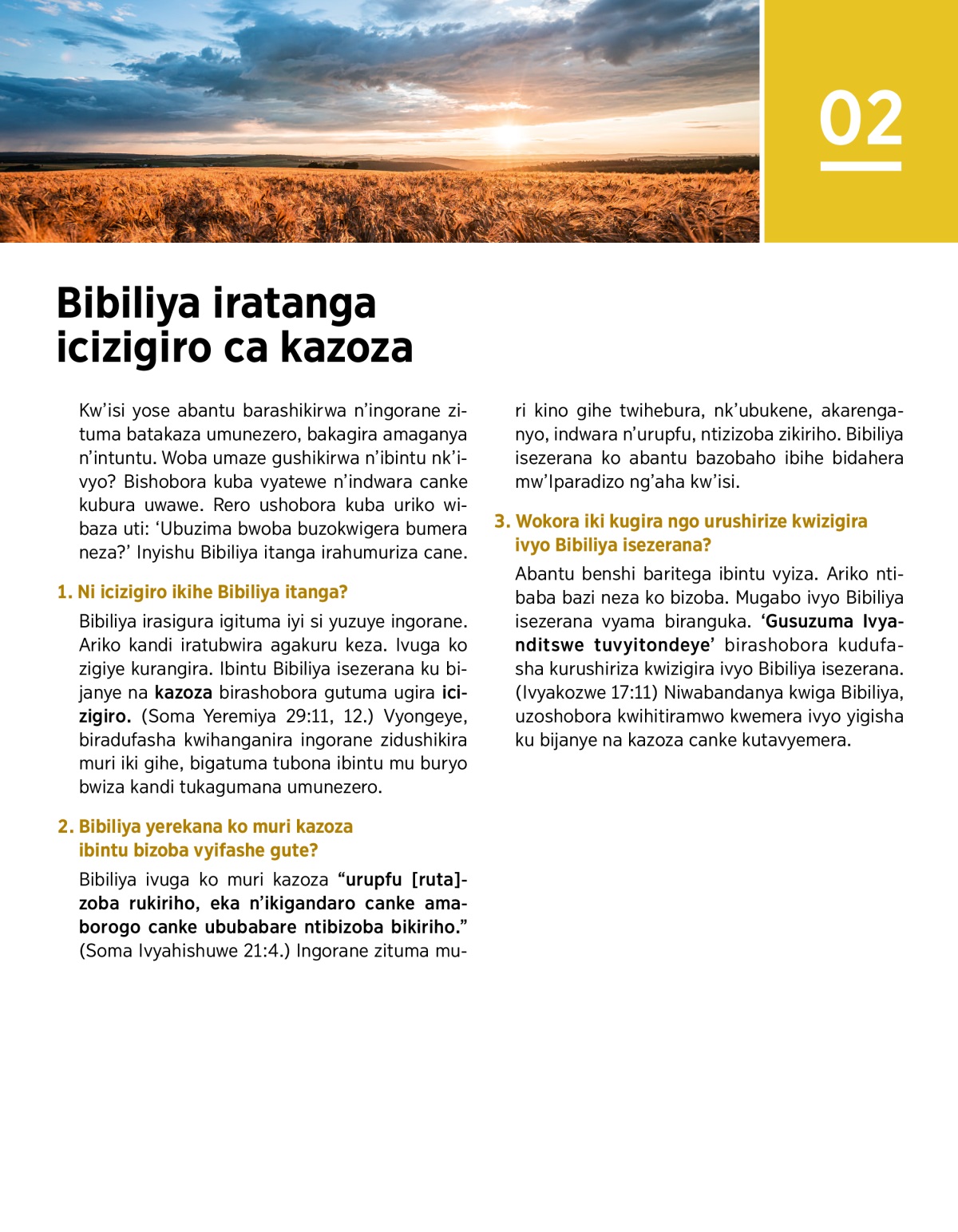 Bibiliya idusezeranira kazoza keza. Ivyo biratuma tugira icizigiro kandi ubuzima bwacu bukarushiriza kumera neza.