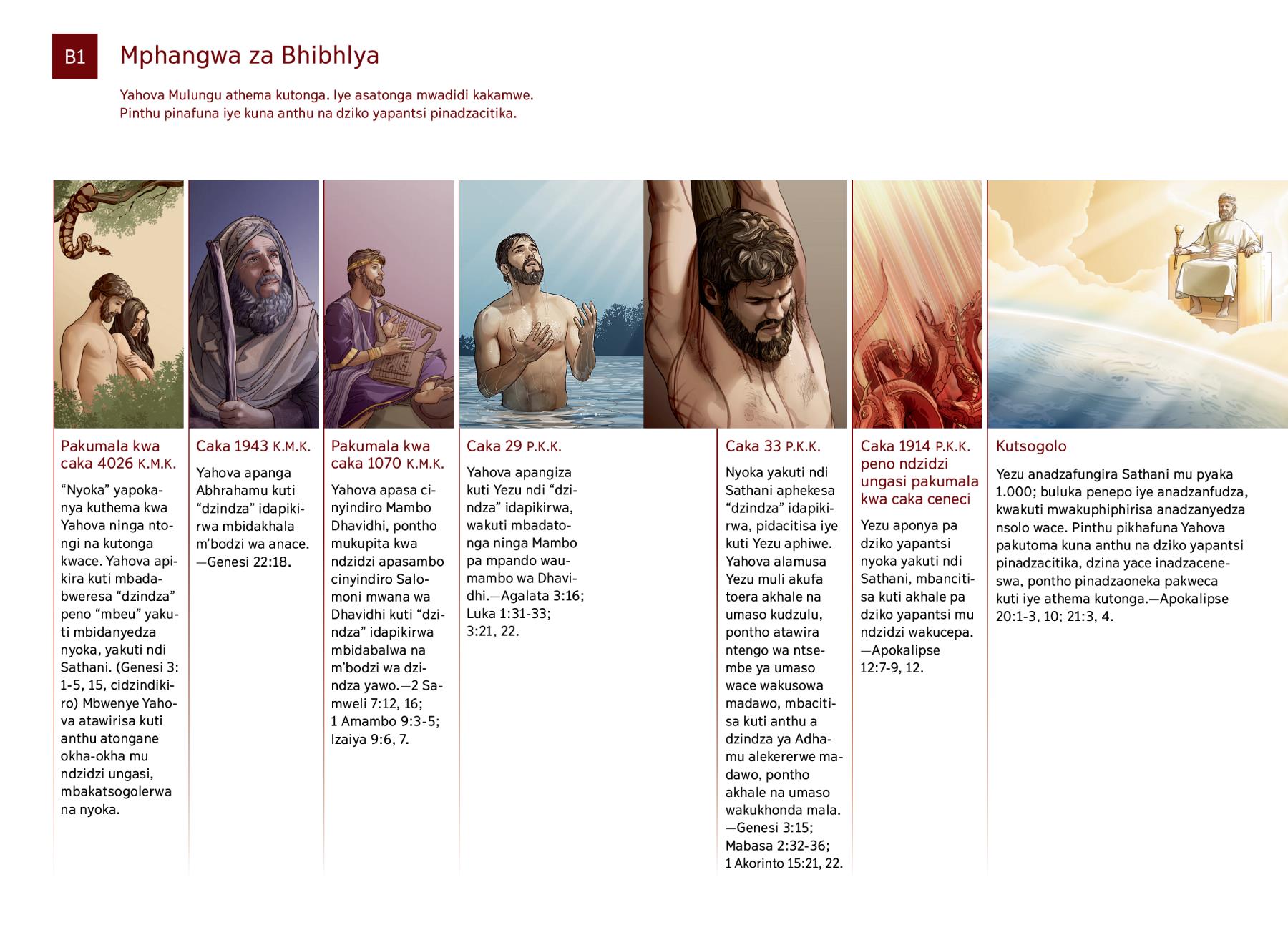 Caka 29 P.K.K. Yahova apangiza kuti Yezu ndi “dzindza” idapikirwa, wakuti mbadatonga ninga Mambo pa mpando waumambo wa Dhavidhi.—Agalata 3:16; Luka 1:31-33; 3:21, 22. |