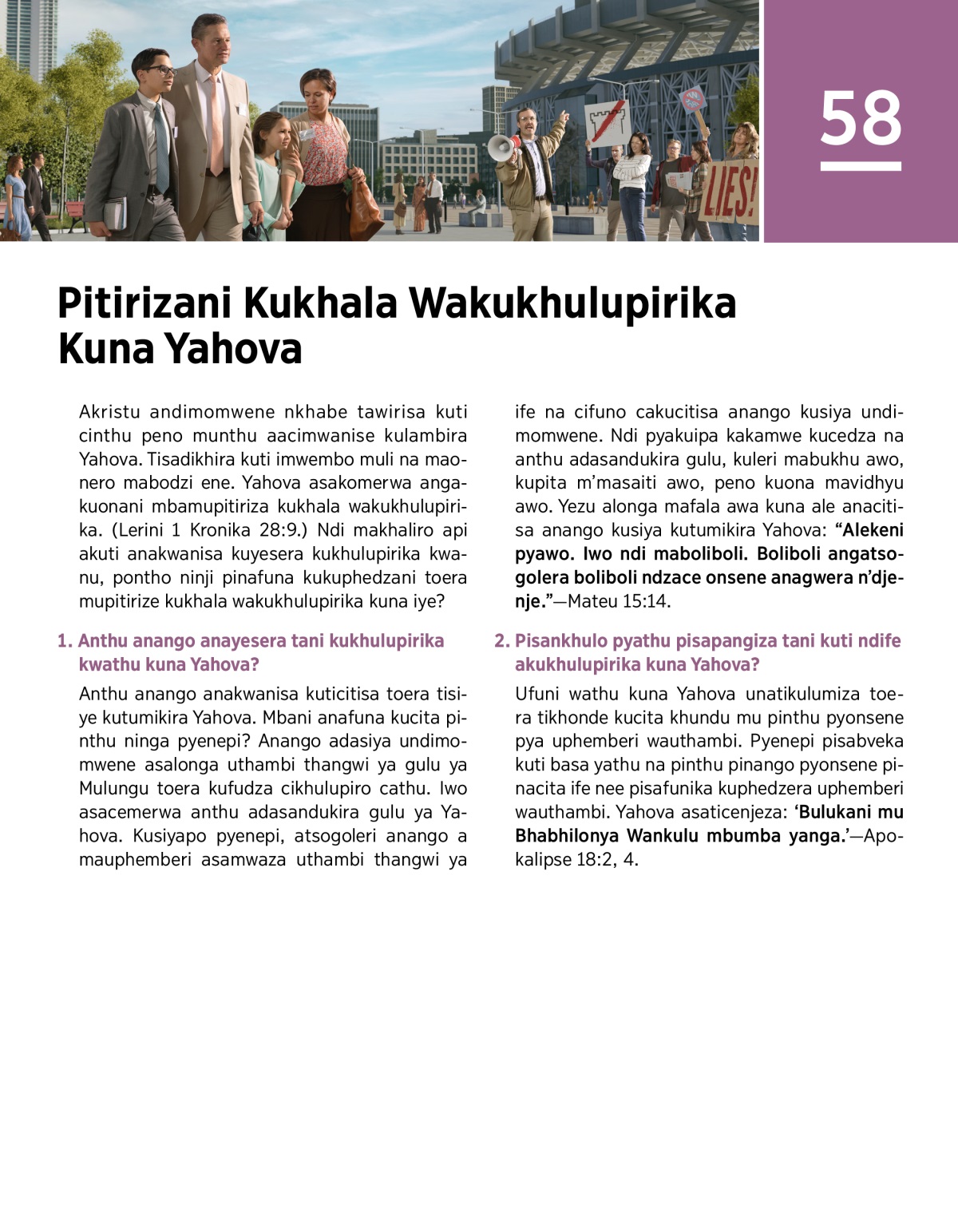 Onani kuti munacitanji toera munthu unango akhonde kukucitisani kukhala wakukhonda kukhulupirika kuna Yahova. Onanimbo kuti munapangiza tani kuti ndimwe wakukhulupirika mungabuluka mu Bhabhilonya Wankulu.