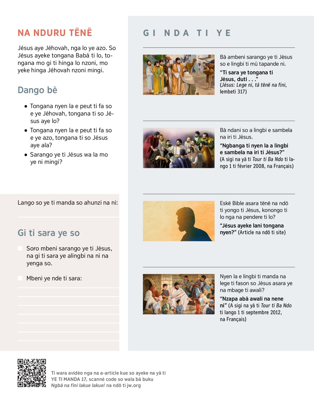 “Jésus ayeke lani tongana nyen?” (Article na ndö ti site)