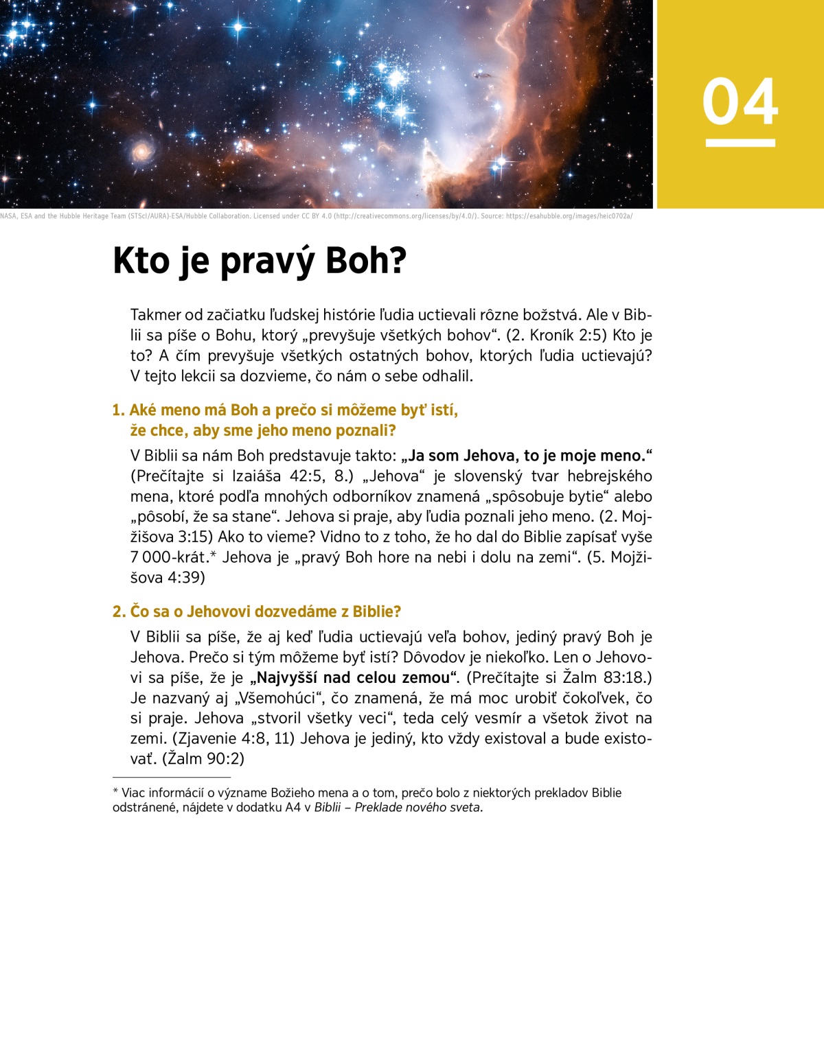 a Viac informácií o význame Božieho mena a o tom, prečo bolo z niektorých prekladov Biblie odstránené, nájdete v dodatku A4 v Biblii – Preklade nového sveta.