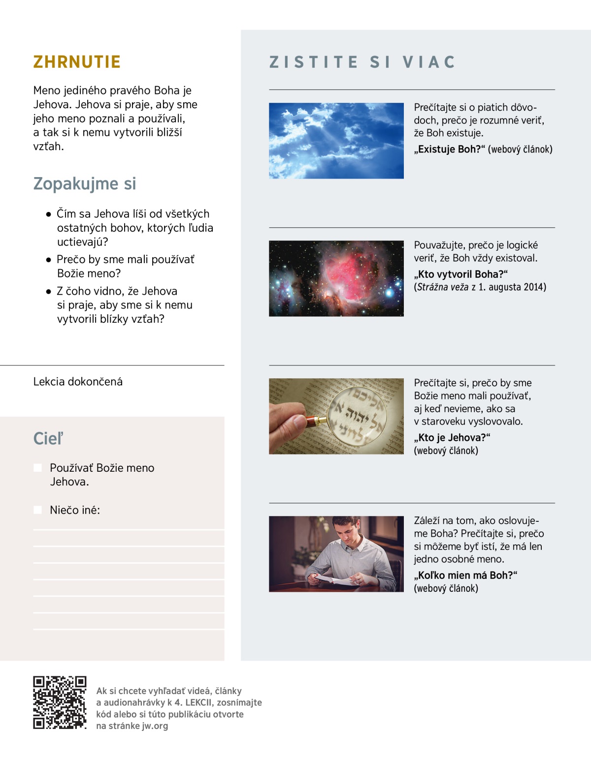 4. Jehova si praje, aby sme poznali a používali jeho meno
