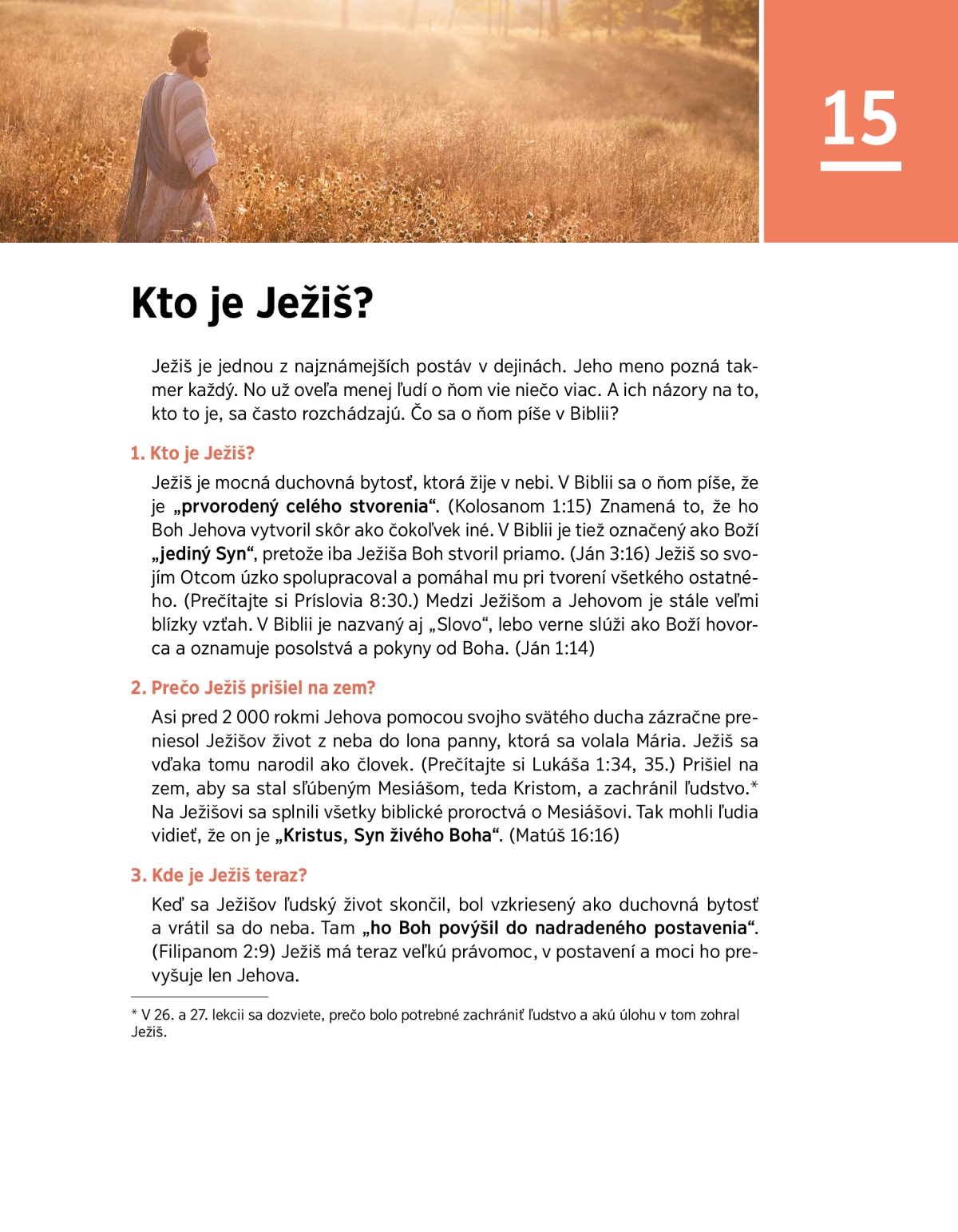 V Biblii sa zdôrazňuje, že je veľmi dôležité spoznávať Ježiša a snažiť sa dozvedieť čo najviac o úlohe, ktorú mu dal Boh. Prečítajte si Jána 14:6 a 17:3 a porozprávajte sa o otázke: