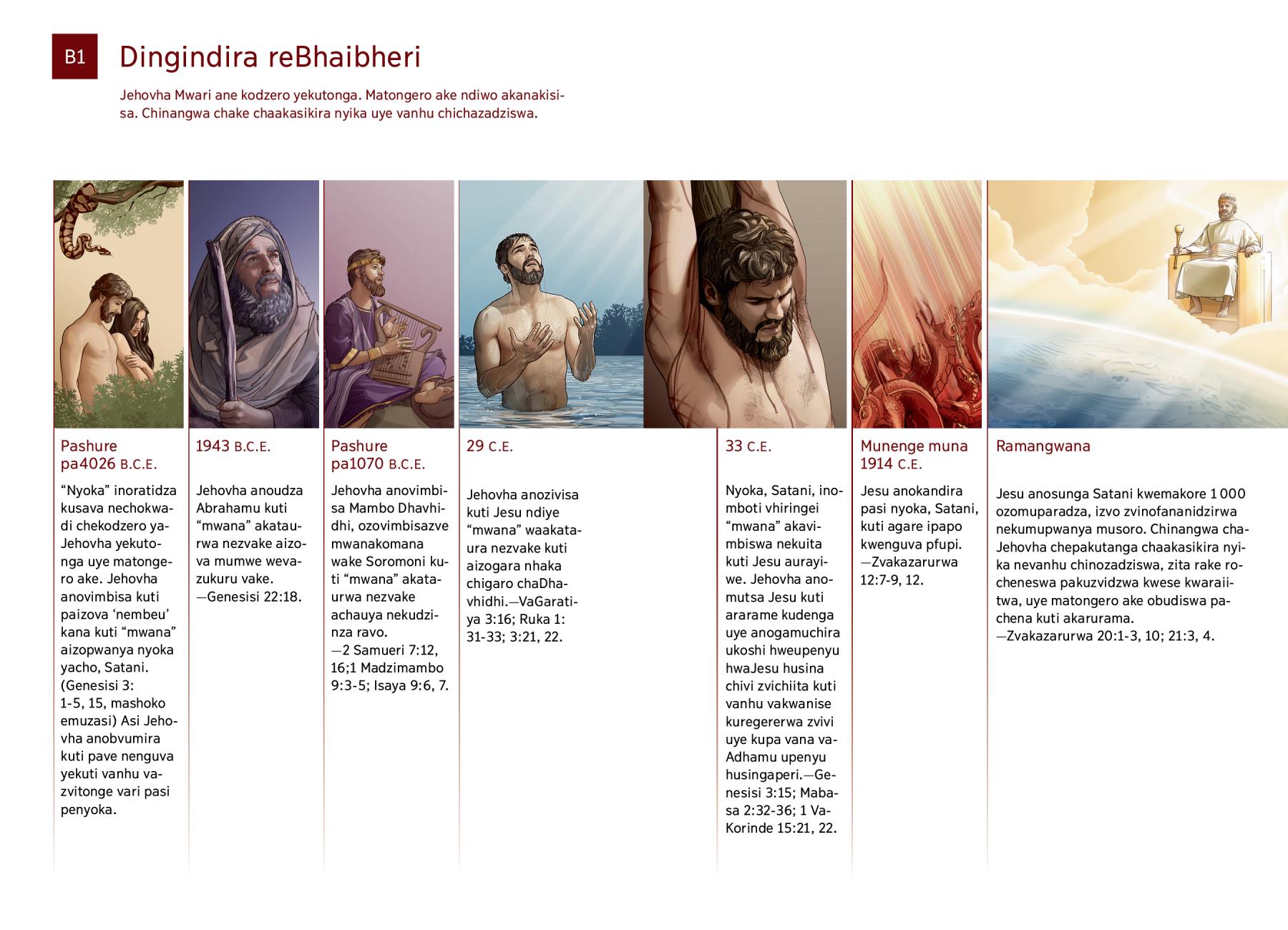 Pashure pa1070 B.C.E. Jehovha anovimbisa Mambo Dhavhidhi, ozovimbisazve mwanakomana wake Soromoni kuti “mwana” akataurwa nezvake achauya nekudzinza ravo.—2 Samueri 7:12, 16;1 Madzimambo 9:3-5; Isaya 9:6, 7. |
