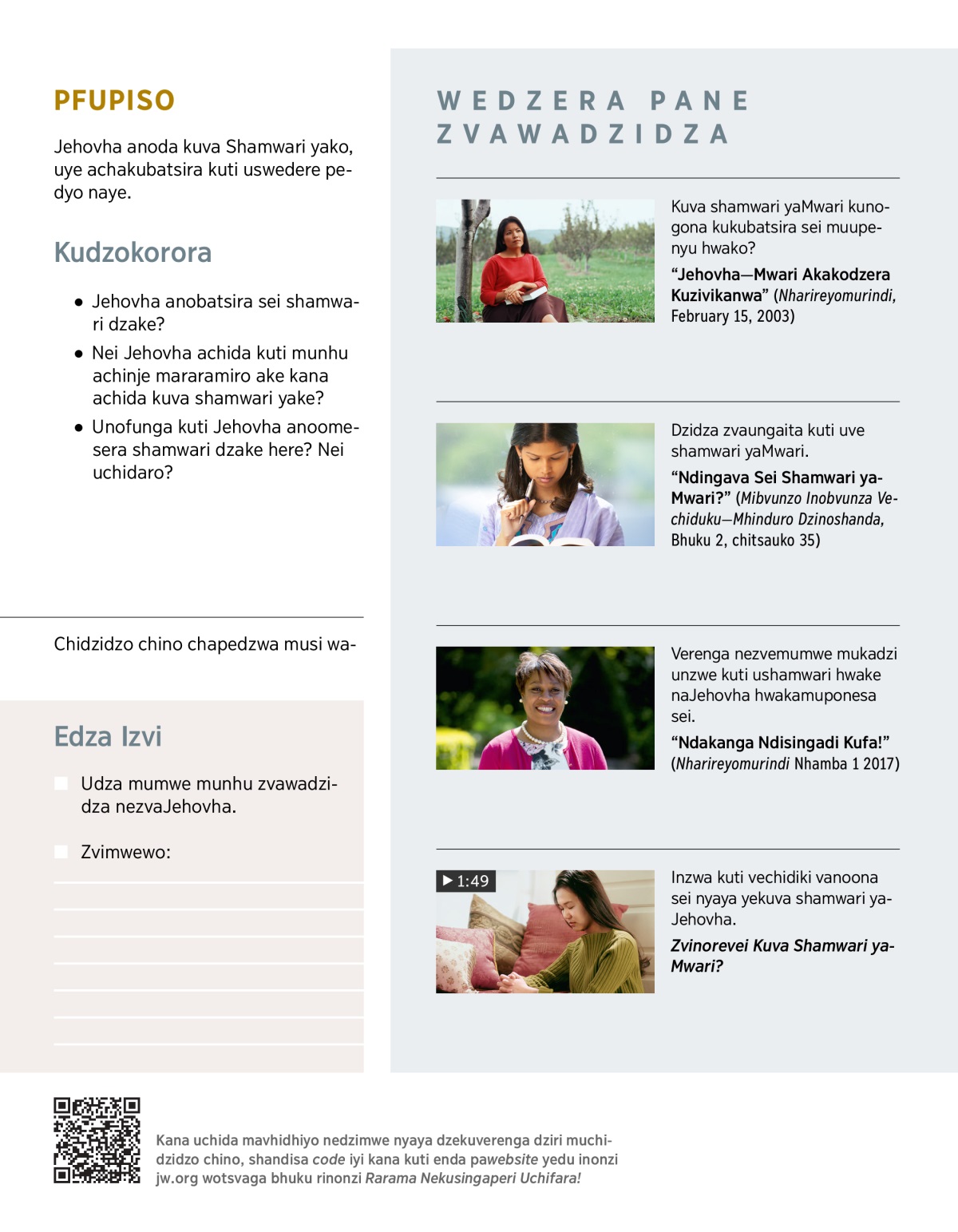 Jehovha anoda kuti uwedzere kumuziva. Zvakanakirei kuti uwedzere kumuziva? Paunoramba uchidzidza nezvake, uye mabatiro aanoita vanhu, nezvinangwa zvake, uchabva wawedzerawo kuda kuva shamwari yake. Unofunga kuti zvingaita here kuti uve shamwari yaMwari? (Verengai Pisarema 25:14.) Ungaita sei kuti uve shamwari yake? Bhaibheri rinopindura mibvunzo iyoyo uye rinoratidza kuti kuva shamwari yaJehovha kunokosha kupfuura kuva shamwari yemumwe munhu upi zvake.