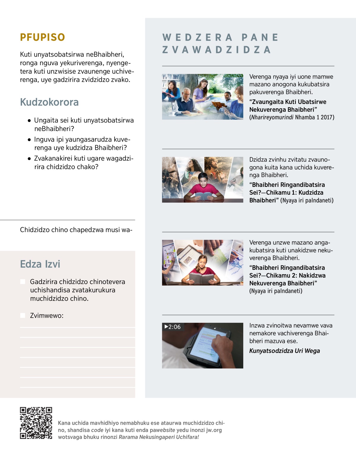 “Bhaibheri Ringandibatsira Sei?—Chikamu 1: Kudzidza Bhaibheri” (Nyaya iri paIndaneti)