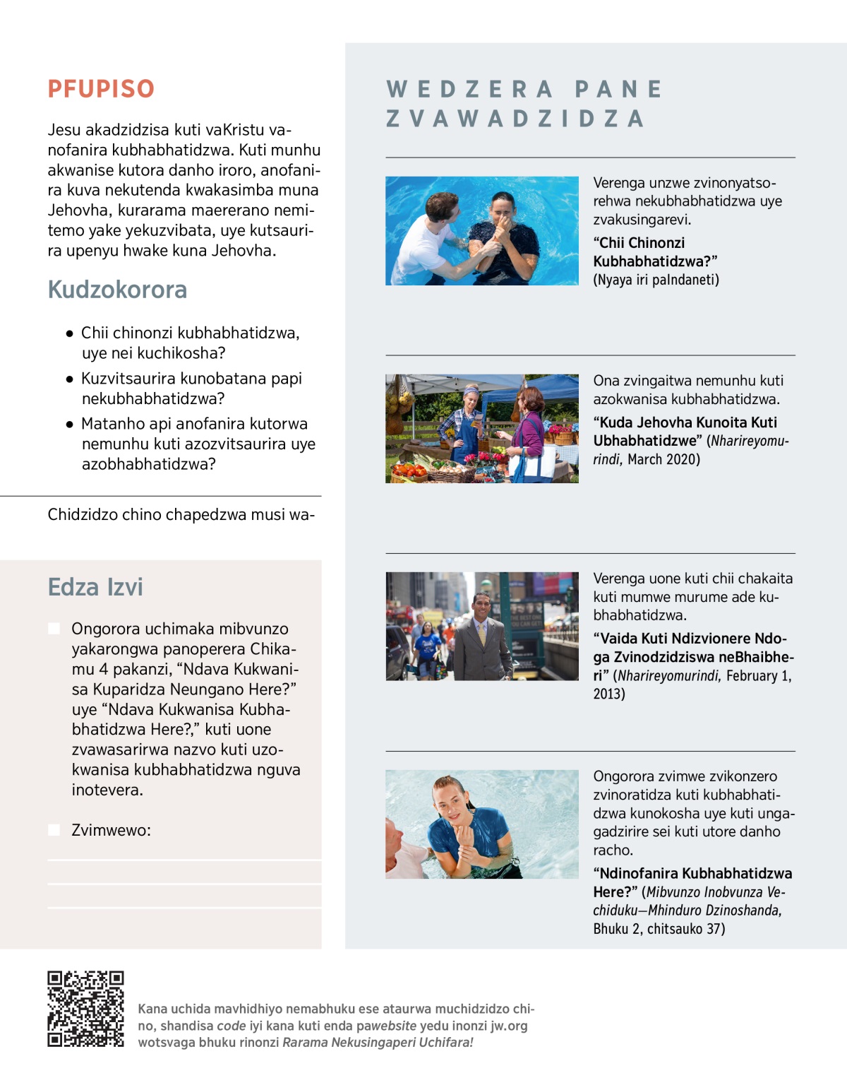 “Kuda Jehovha Kunoita Kuti Ubhabhatidzwe” (Nharireyomurindi, March 2020)