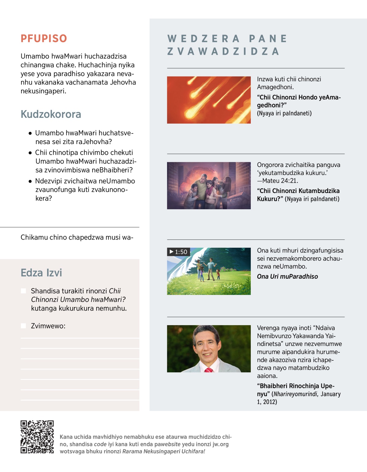 Umambo huchaita kuti chinangwa chaMwari chaakasikira vanhu chizadziswe zvakakwana. Vachararama nekusingaperi muparadhiso pasi pano. Ngationei VHIDHIYO tione zviri kuitwa naJehovha kuti azadzise chinangwa chake achishandisa Mwanakomana wake, Jesu.
