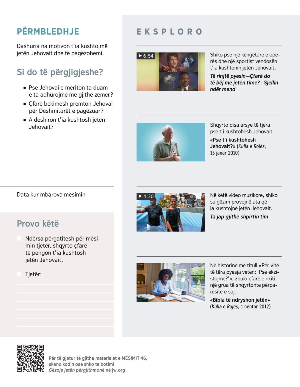 Shqyrto disa arsye të tjera pse t’i kushtohesh Jehovait.