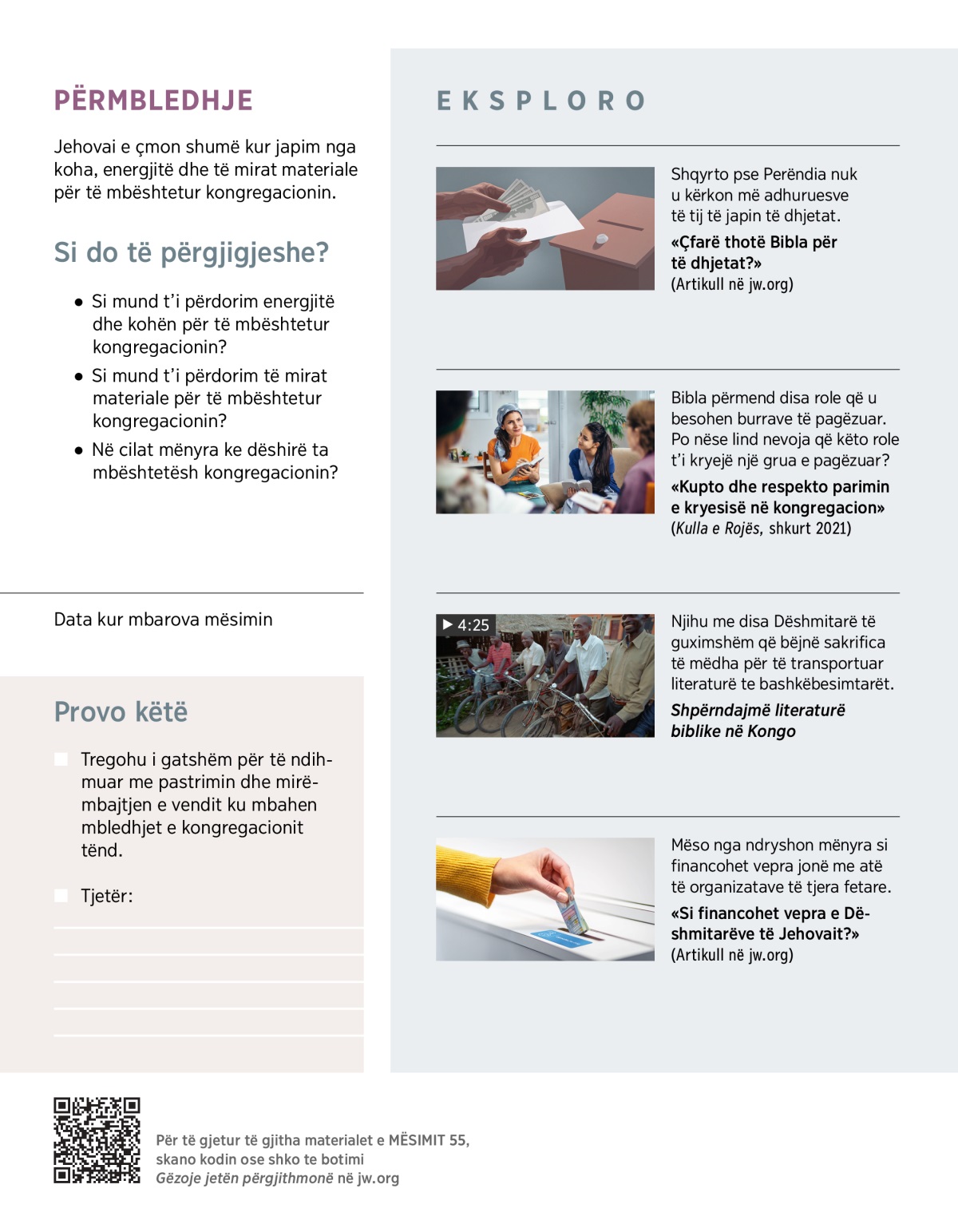 Shqyrto disa mënyra si mund ta mbështetësh kongregacionin.