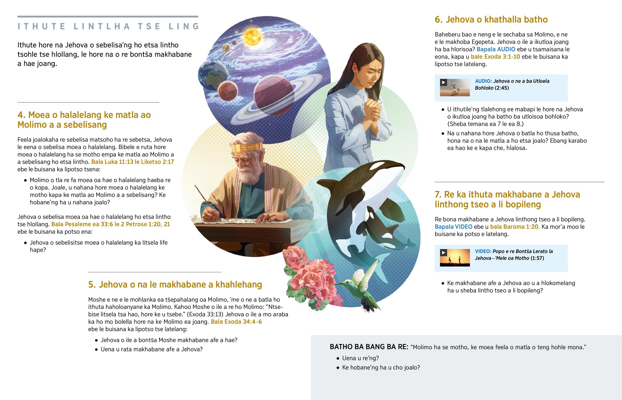 Moshe e ne e le mohlanka ea tšepahalang oa Molimo, ’me o ne a batla ho ithuta haholoanyane ka Molimo. Kahoo Moshe o ile a re ho Molimo: “Ntsebise litsela tsa hao, hore ke u tsebe.” (Exoda 33:13) Jehova o ile a mo araba ka ho mo bolella hore na ke Molimo ea joang. Bala Exoda 34:4-6 ebe le buisana ka lipotso tse latelang: