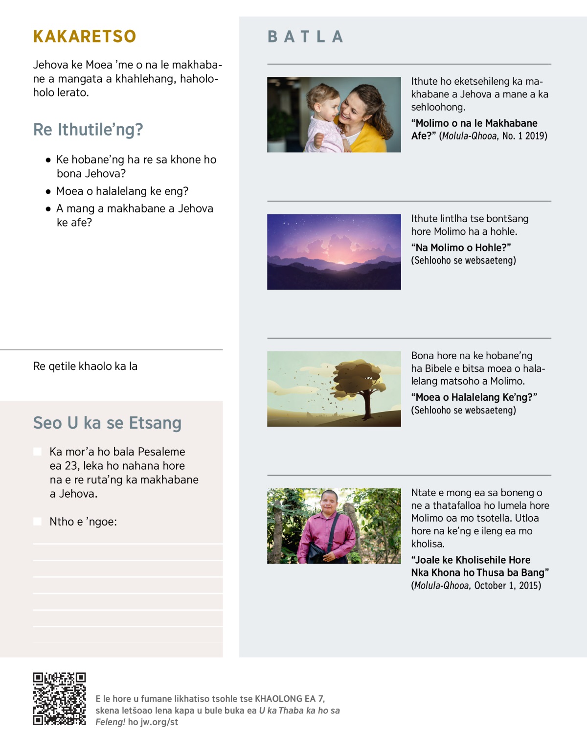 Na u nahana hore Jehova o batla ho thusa batho, hona na o na le matla a ho etsa joalo? Ebang karabo ea hao ke e kapa che, hlalosa.