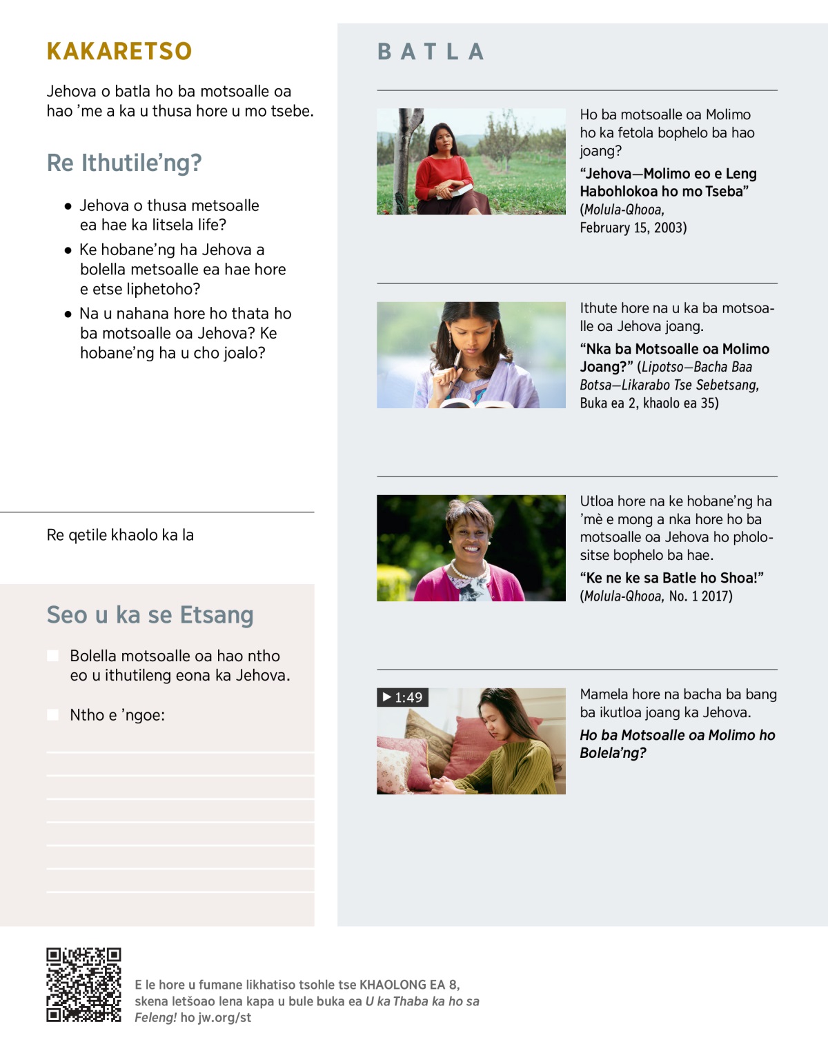 1. Jehova o batla hore u etse’ng?